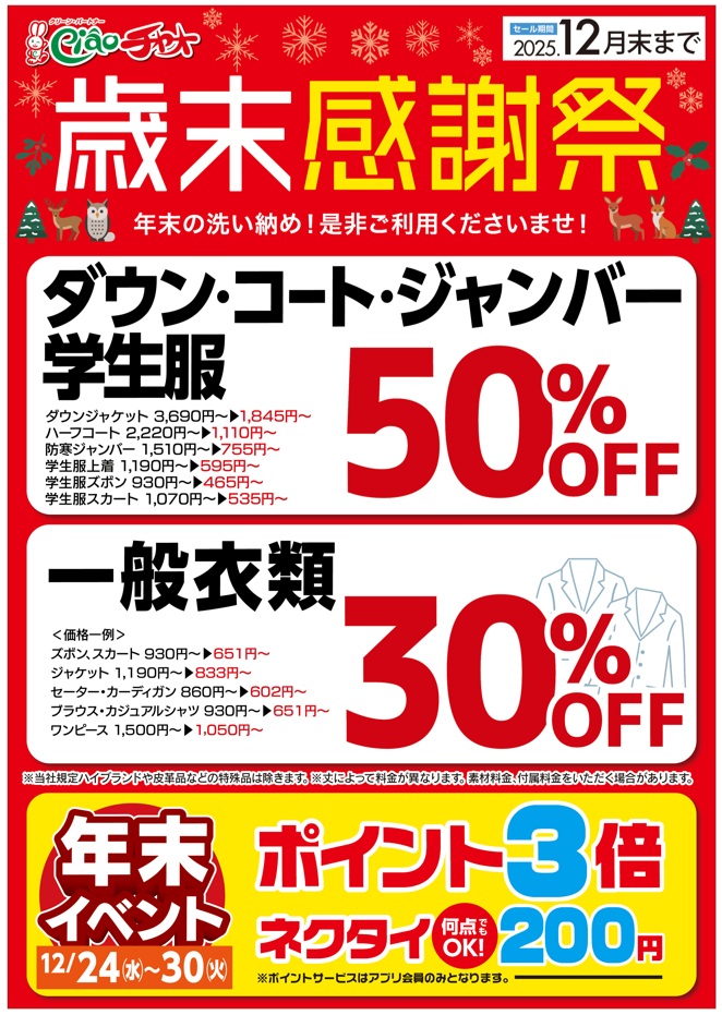 クリーンパートナーチャオでは、お得なキャンペーン情報を掲載しております!期間限定ですので、是非チェックしてみてください。